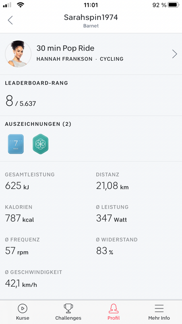 Bis vor ein paar Tagen. Da sehe ich auf der Peloton UK Instagram Seite den Post einer Ü40 Frau, normale schlanke sportliche Figur, sie sei "again Number 1" ! Ihr Output bei einem 30 Minuten Kurs: über 650 KJ. Sorry kann das sein??????? Ich klicke mich durch das Profil und mir fällt da echt der Kitt aus der Brille.