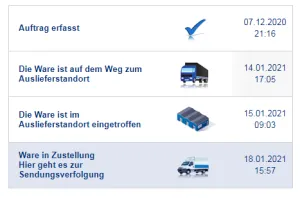Dann sehr Ihr zumindest (hoffentlich) Euren Auftrag mit Status und Infos zur Lieferung: