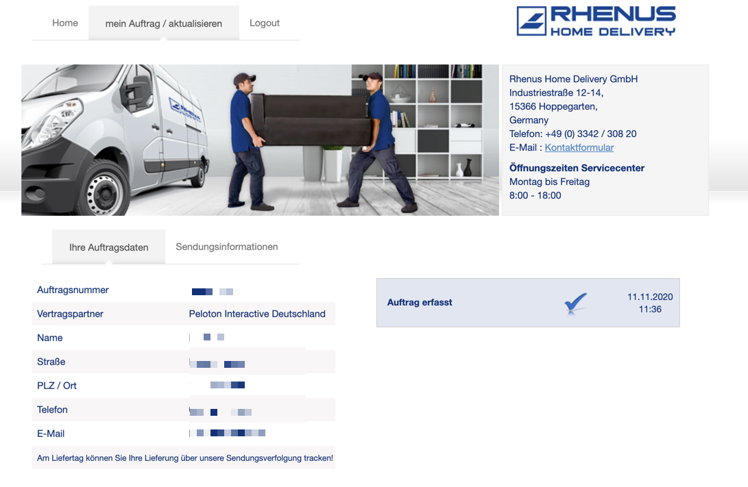 Peloton Lieferung über Rhenus / Status prüfen
