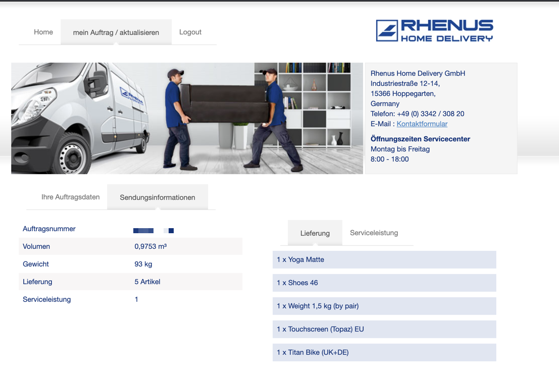 Ich habe aber herausgefunden, dass man zumindest das Vorliegen des Auftrages bei Rhenus prüfen kann:
