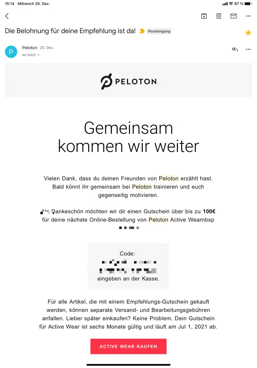 Referral Gutschein Mail kommt erst auf Nachfrage