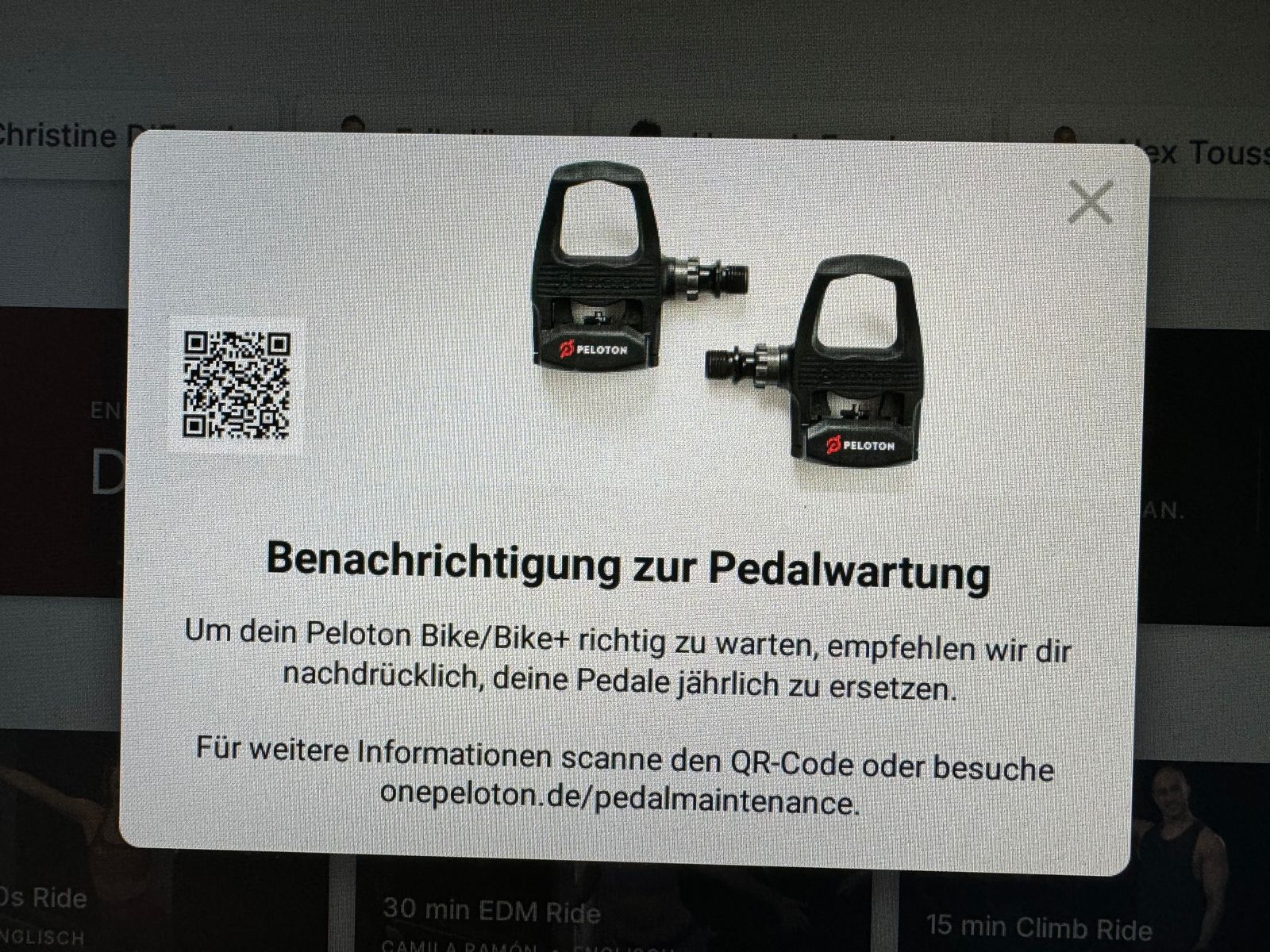 Jährlicher Austausch der Pedale beim Peloton Bike?