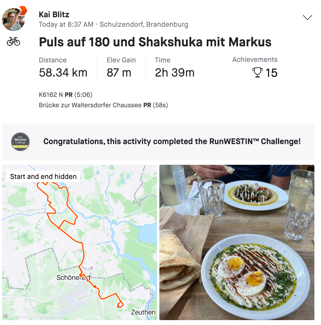 Am Wochenende entfällt dann auch mal ein Peloton Training und es gibt dann eine richtige Ausfahrt mit deutlich mehr Kilometern.