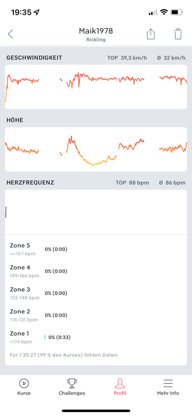• Das kann ich auch bestätigen. Neulich hat mein Pulsmesser bei einer Bergauffahrt 166 angezeigt. Bei Garmin wurde der Maximalpuls auch korrekt angegeben. Peloton hat dann 160 daraus gemacht.