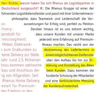 Die Rhenus Logistics wirbt auf Ihrer Website sogar mit einem Interview zwischen dem