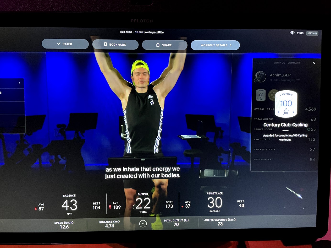 1090 kcal oO heftig... bei 30 mins liege ich gerade mal bei 400-500kcal.. Und ja Cooldown nutzen einige um noch paar Plätze vor zu rücken..man kann danach ja noch nen separaten cooldown ride machen.