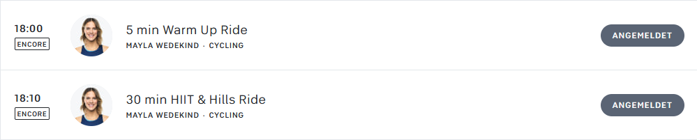 Heute hab ich langsam mit einem 15 min Low Impact Ride von Eric angefangen und mit einem 5 min Cooldown abgeschlossen.